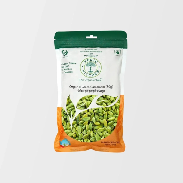 Vedic Kitchen’s Organic Green Cardamom is a premium-quality spice that offers a range of health benefits. Known as the "Queen of Spices," this aromatic herb is packed with antioxidants and essential oils that aid in digestion, reduce inflammation, and improve heart health. Rich in vitamins, minerals, and fiber, it helps in boosting immunity, enhancing metabolism, and supporting respiratory health. Whether used in cooking, teas, or as a natural remedy, Organic Green Cardamom can easily be included in your daily routine for improved overall well-being and a delightful burst of flavor.